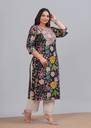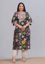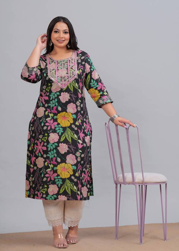 The Labuly Plus Size Women Kantha Work Printed Pure Cotton Straight Kurta in perfect color combines elegance with comfort. Crafted from pure cotton, this kurta ensures breathability while keeping you stylish with intricate Kantha work. The straight fit offers a flattering silhouette for plus-size figures. Its classic black hue makes it versatile for both casual and festive occasions. Pair this kurta with leggings or palazzos to create a comfortable yet chic ensemble suitable for any time of day