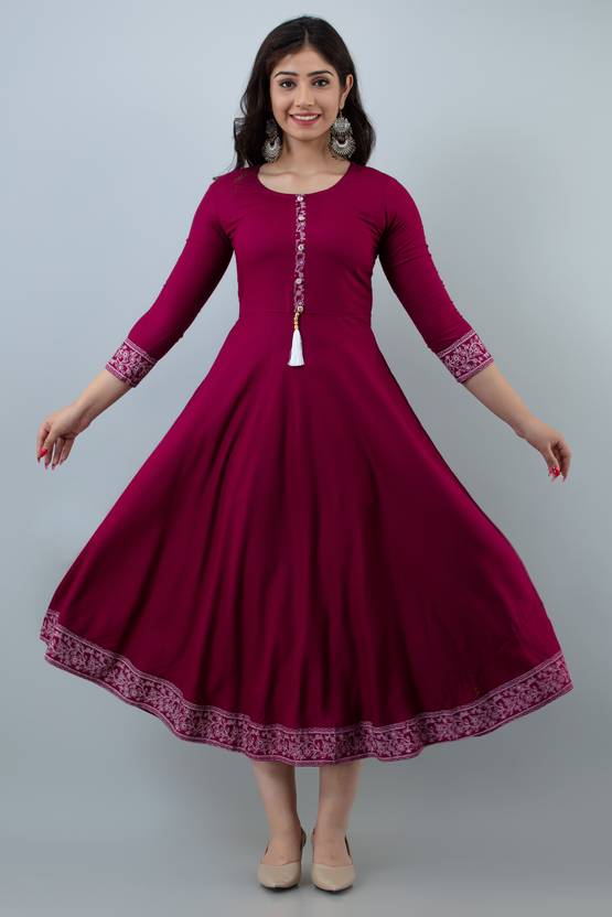 LABULY Women Solid Viscose Rayon Flared Kurta  (Maroon)