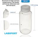 Key Features | - Durable Polypropylene Material – Made from high-quality, chemical-resistant PP plastic, ideal for laboratory, industrial, and home use., Wide Mouth Design – Easy to fill and pour without spills; perfect for powders, liquids, and viscous substances., Leak-Proof Screw Cap – Ribbed caps with sealing liners provide secure, airtight closure to prevent leakage and contamination., Autoclavable & Reusable – Withstands autoclave sterilization at up to 121°C (250°F); reusable and environmentally friendly., Multipurpose Use – Suitable for chemicals, reagents, essential oils, powders, DIY projects, travel, and sample storage.