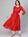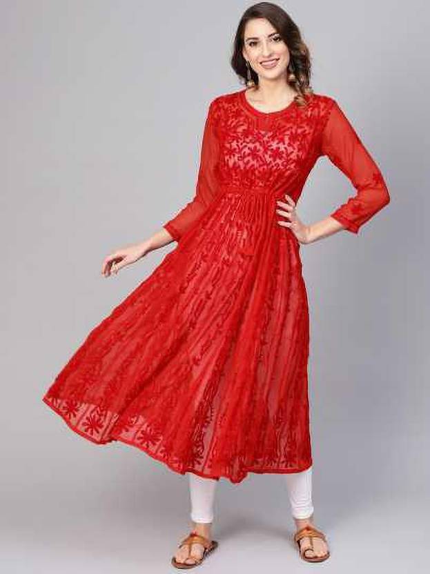 Women Chikan Embroidery Georgette Flared Kurta (Red)
