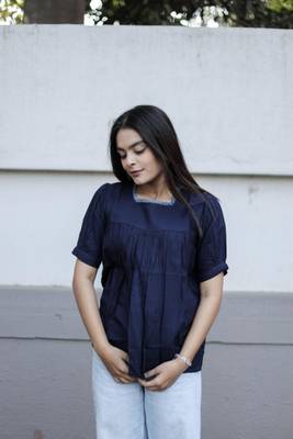 LADAKDI Casual Self Design Women Dark Blue Top Reviews