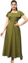 Women long maxi dress with tie-up detail, has a round neck, Short sleeves and flared hem.