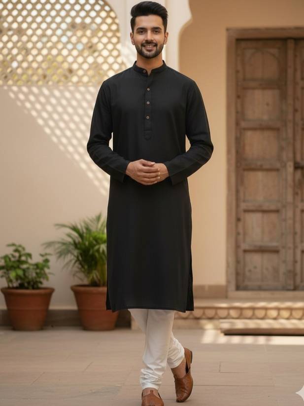 Men Solid Pure Cotton Straight Kurta (Black)