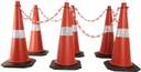 Ladwa Road Traffic Cone, Pack of 6 cones 750mm, with 6 mtr chain + 6 hooks, (Safety Cone, Traffic Safety Cone, Road Safety Cone with Reflective Strips Collar) Emergency Sign (Reflective Sign)