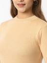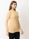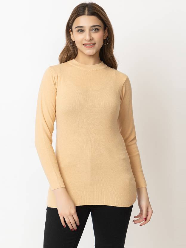 LADY LEAF Women Self Design High Neck Beige Sweater
