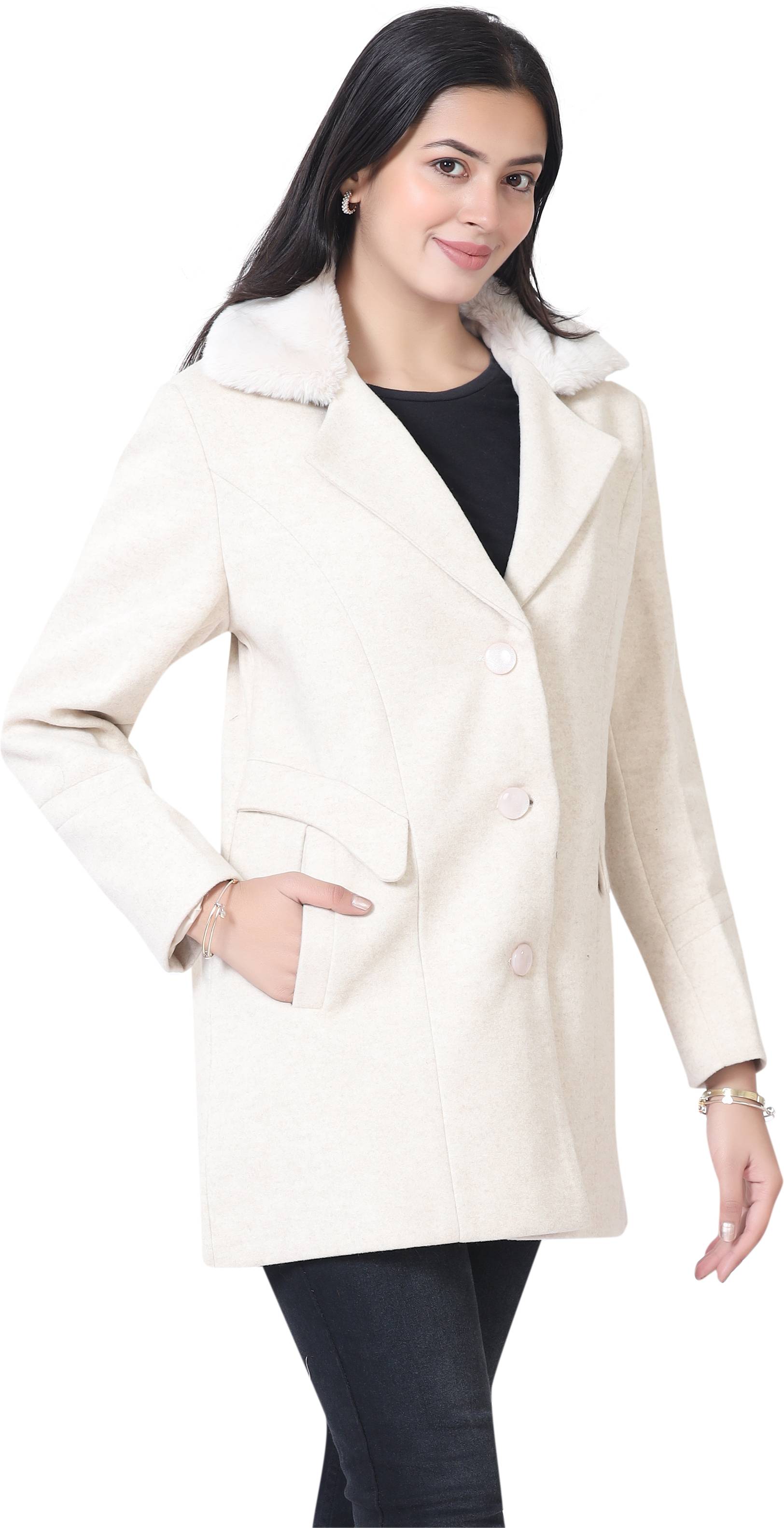 Elevate your winter style with this elegant coat, designed to keep you warm while adding a touch of sophistication to your look. Crafted from premium-quality Suede fabric, this coat features a soft faux fur collar for extra comfort and a luxurious finish. The tailored fit enhances your silhouette, making it a perfect choice for both formal and casual winter outings.Pair it with black trousers or jeans and ankle boots for a classy winter look. Add a scarf for extra warmth and flair.