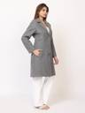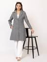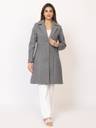 Stay effortlessly stylish this winter with this elegant grey long coat. Tailored from a premium suede fabric, it offers a perfect balance of warmth, comfort, and sophistication. The structured fit and minimalist design make it a versatile addition to your wardrobe — ideal for both office wear and casual outings.Pair it with white trousers or dark jeans and heeled boots for a chic, winter-ready look.