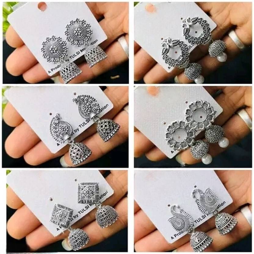 A beautiful new latest design traditional jhumki earrings collection women and girls These jhumka jhumki earrings are wearable for any occasion Silver plated oxidised Jhumkiyan will look very beautiful on all dresses This silver earring combo pack of 6 earrings best for gifting's and personal use
