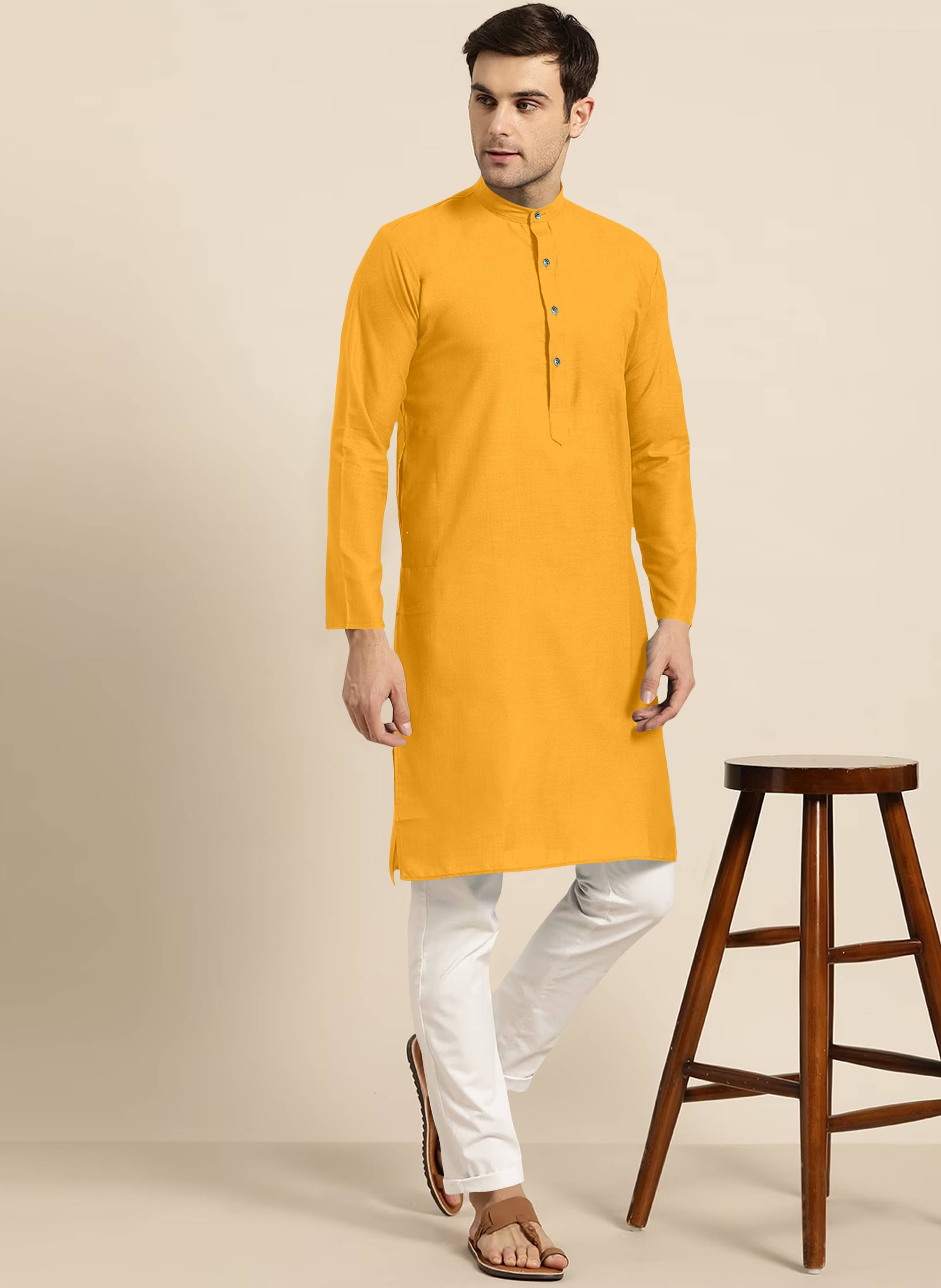 Introducing the perfect ensemble for the modern Indian man - the Cotton Men's Kurta and Pyjama. Crafted from premium quality cotton, this traditional attire is both comfortable and stylish, making it the perfect choice for any occasion.