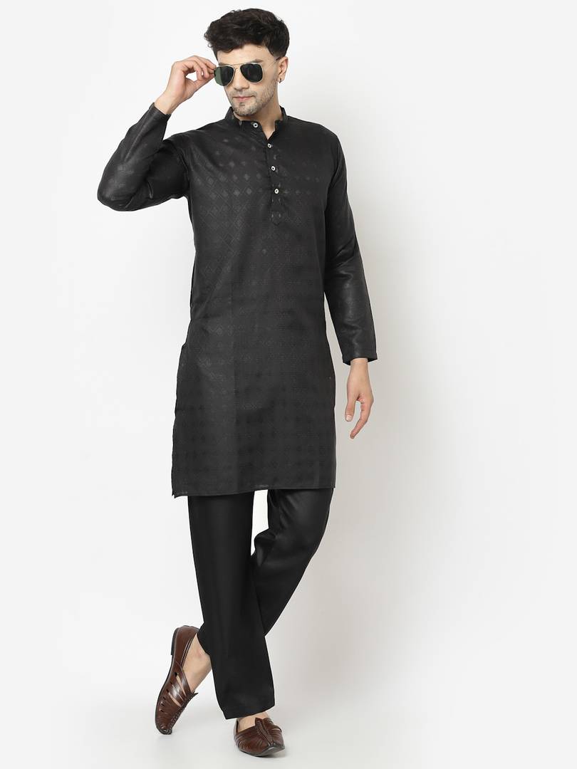 Ladyflock Men Solid Cotton Blend Straight Kurta  (Black)