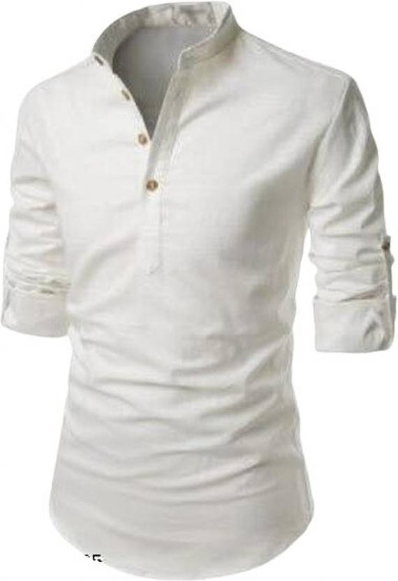 Ladyflock Men Solid Cotton Blend Straight Kurta  (White)