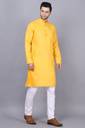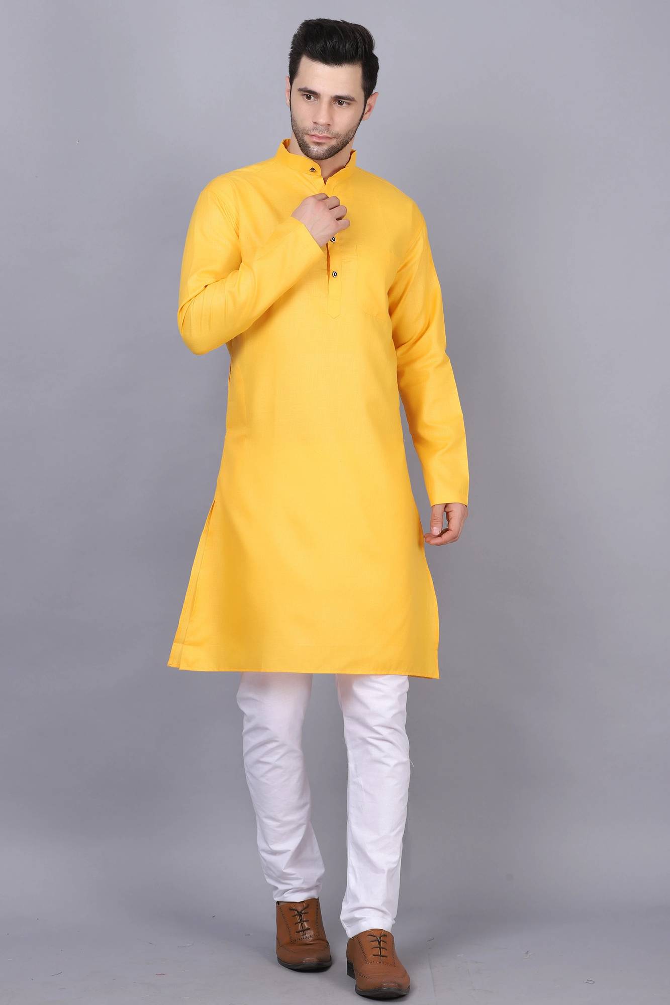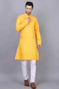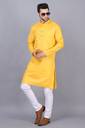 LYPLO Men Solid Cotton Blend Straight Kurta  (Yellow)