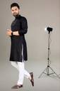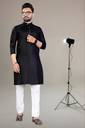 Wearbird Men Solid Cotton Blend Straight Kurta  (Black)