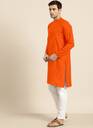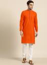 Ladyflock Men Solid Cotton Blend Straight Kurta  (Orange)