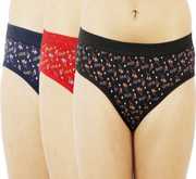 Fun, girly and trendy, these pretty low - waist panties in a pack of three, are the perfect all-rounders. The stretch cotton fabric makes them score high on comfort, while the vibrant, bubbly shades up their style quotient. Soft elastic on the waist gently hugs your waist and the full rear coverage provides a seamless too