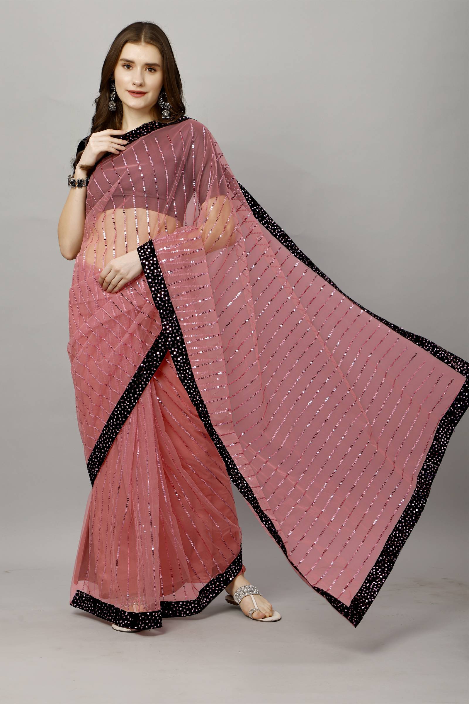 JPBANNA Self Design Bollywood Net Saree (Multicolor)