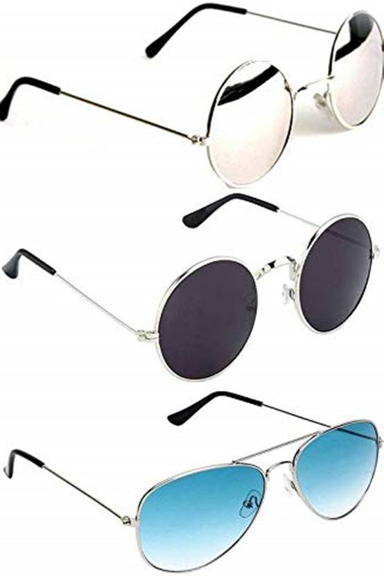 Others Aviator, Round Sunglasses (52) (For Men & Women, Blue, Black, Silver)