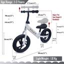 LAFILLETTE Lightweight Adjustable Seat Without Pedal Kids Balance Bicycle for Girl and Boys 12 T (inch) Recreation Cycle (Single Speed, White, Rigid)