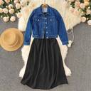 Dress With Jacket Women/Girls 100% Premium Quality Material Women Stylish Jacket With Dress COMBO (PACK OF 2) Urbane Latest Women Dresses With Jacket. Knee Length Dress & Regular Denim Jacket COMBO.