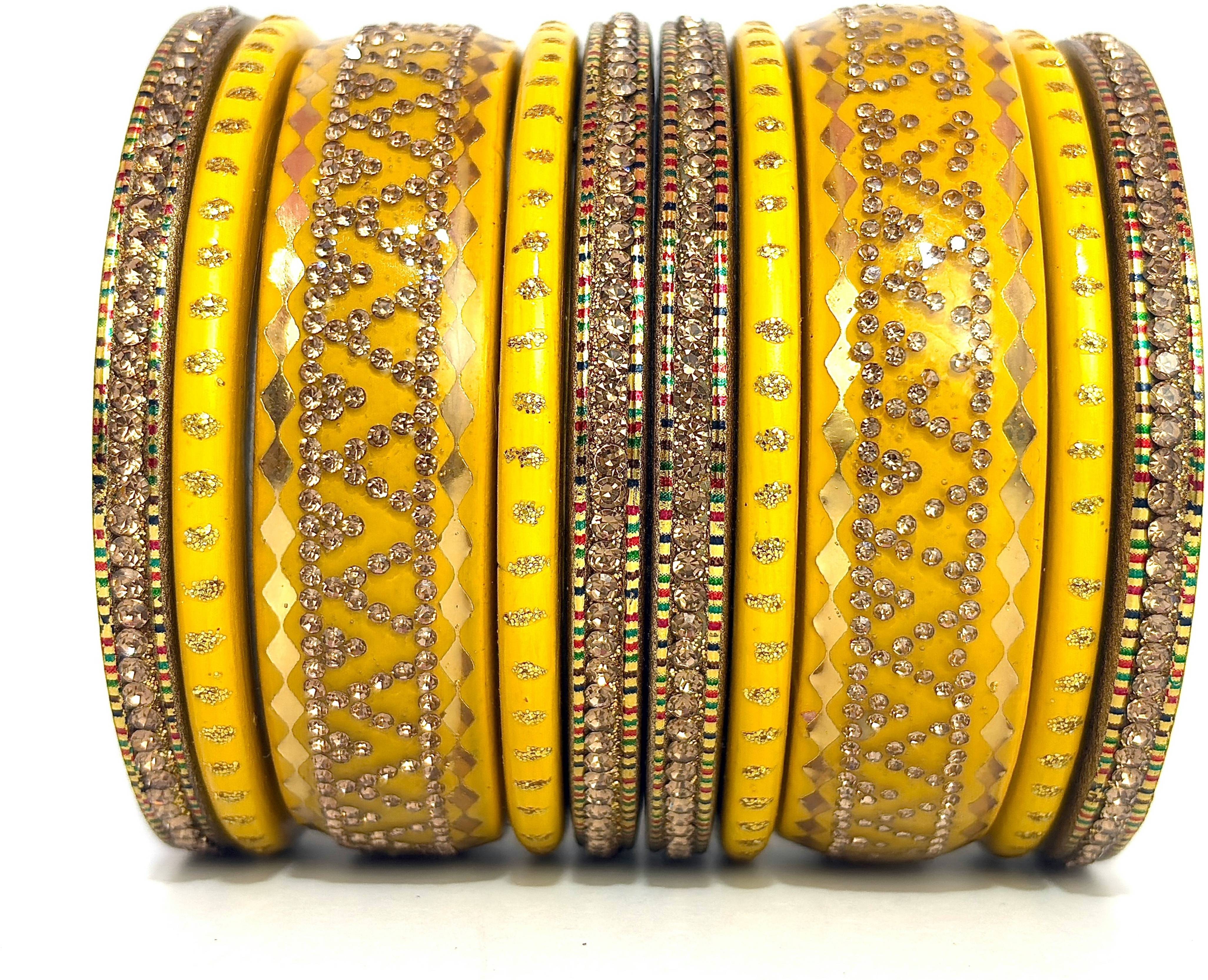 Bring charm to your traditional look with this stunning set of 10 Yellow -color bangles. Crafted with care and a glossy finish, they pair beautifully with sarees, suits, and lehengas. Whether it’s a wedding or a festive evening, let your hands do the talking! Celebrate tradition with style. This elegant set of 10 Yellow-colored bangles is designed to match the beauty of every Indian outfit. Lightweight, stylish, and timeless – just like you.