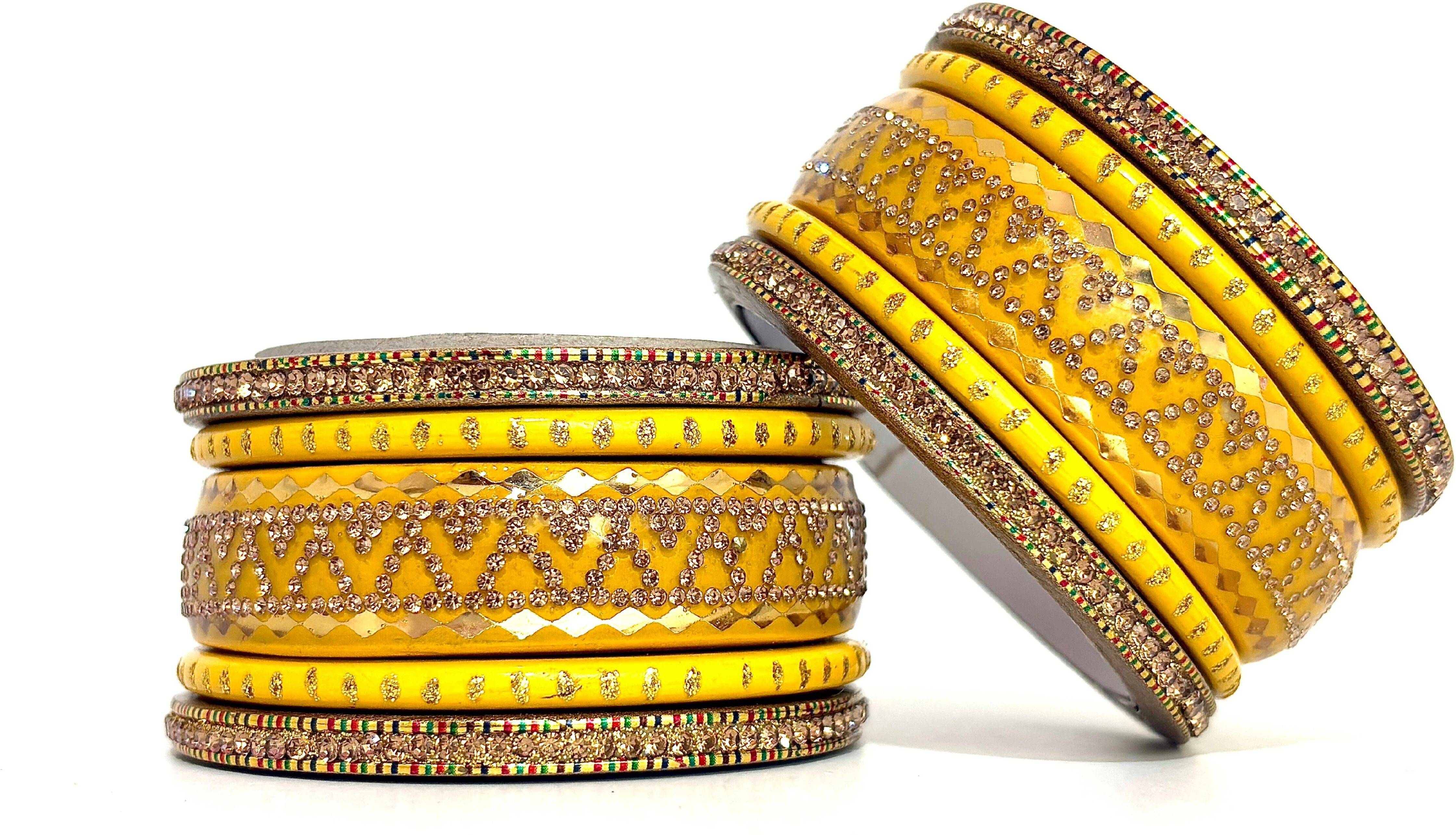 Bring charm to your traditional look with this stunning set of 10 Yellow -color bangles. Crafted with care and a glossy finish, they pair beautifully with sarees, suits, and lehengas. Whether it’s a wedding or a festive evening, let your hands do the talking! Celebrate tradition with style. This elegant set of 10 Yellow - colored bangles is designed to match the beauty of every Indian outfit. Lightweight, stylish, and timeless – just like you.