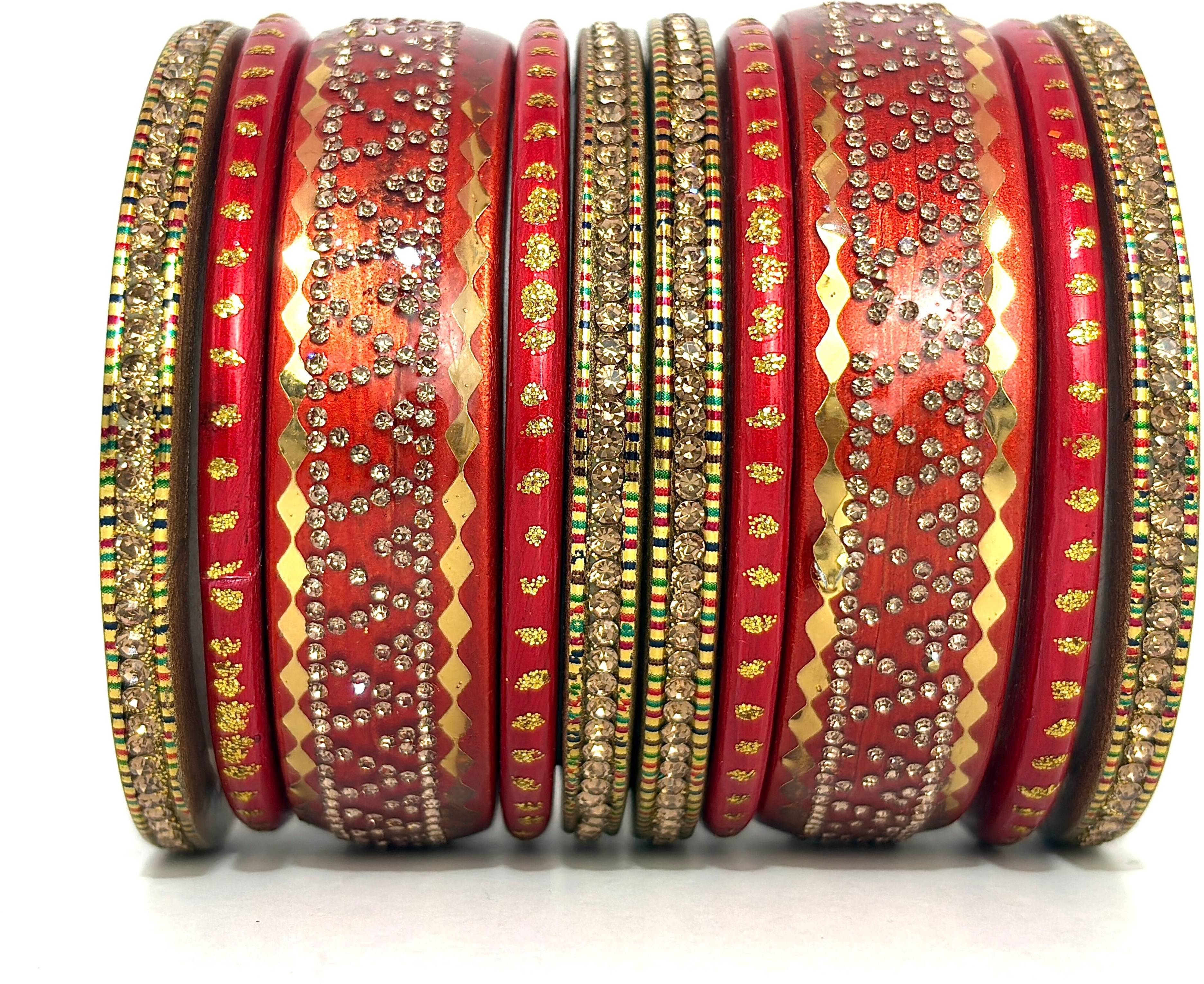 Bring charm to your traditional look with this stunning set of 10 Peach -color bangles. Crafted with care and a glossy finish, they pair beautifully with sarees, suits, and lehengas. Whether it’s a wedding or a festive evening, let your hands do the talking! Celebrate tradition with style. This elegant set of 10 Peach -colored bangles is designed to match the beauty of every Indian outfit. Lightweight, stylish, and timeless – just like you.