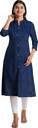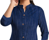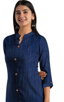 Sporting an A-line silhouette, this kurta flatters you with its tailored fit, offering comfort and ease of movement. The contemporary Mandarin collar style adds a touch of modernity. The three-quarter sleeves provide practicality, making it suitable for both warm and mild weather. Designed at knee length, this kurta ensures modesty and versatility, making it an excellent choice for various settings, from casual outings to professional environments.