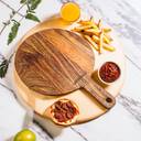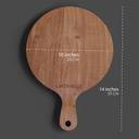 Each serving board is expertly crafted from high-quality strong Acacia - Kikar Wood, showcasing its natural beauty and distinctive grain patterns. The round design adds a touch of sophistication to any table setting, making it an ideal choice for serving appetizers, cheeses, bread, and more.