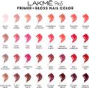 Get everyday perfect nails with Lakme 9to5 Primer + Gloss Nail Colour. Presenting the all new Lakme 9to5 Primer + Gloss Nail Colour range with colours that dry quickly, giving your nails a long lasting intense glossy shine. Now coat your nails with vibrant colour and an intense glossy shine that stays through your busy work days. Available in a wide range of 29 bright colours and 1 Top Coat that gives an added glossy finish. Colour for everyday use, the shades are simply a must-have! Priced at only Rs.180, the Lakme 9to5 Primer + Gloss nail colour range will give you an everyday-perfect glossy look to your nails. To get perfect glossy nails, start by applying one coat of your desired nail colour. Wait between coats to get a smooth, dry layer. Apply the Top Coat to coat your nails with a glossy, chip-proof texture and give any nail colour a smooth, long-lasting glossy finish. Youre now ready to go with everyday-perfect glossy nails. Key features & Benefits: Long-lasting colour that strengthens nails to keep colour fresher for longer Intense glossy shine Dries quickly A range of vibrant colours Zero yellowing of nails Perfect for everyday use Go Glossy Everyday!