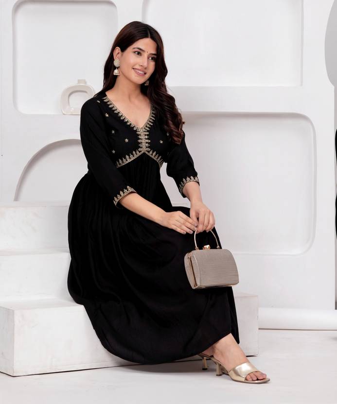 Lakshay Fashion Women Embellished Anarkali Kurta (Black)
