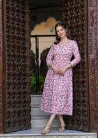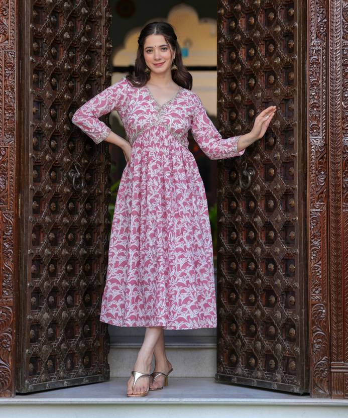Lakshay Fashion Women Embroidered Anarkali Kurta (Pink)