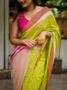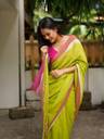 The saree appears to be made of a soft cotton or cotton-silk blend, which drapes beautifully and offers comfort — ideal for festive occasions, traditional events, or elegant day wear.