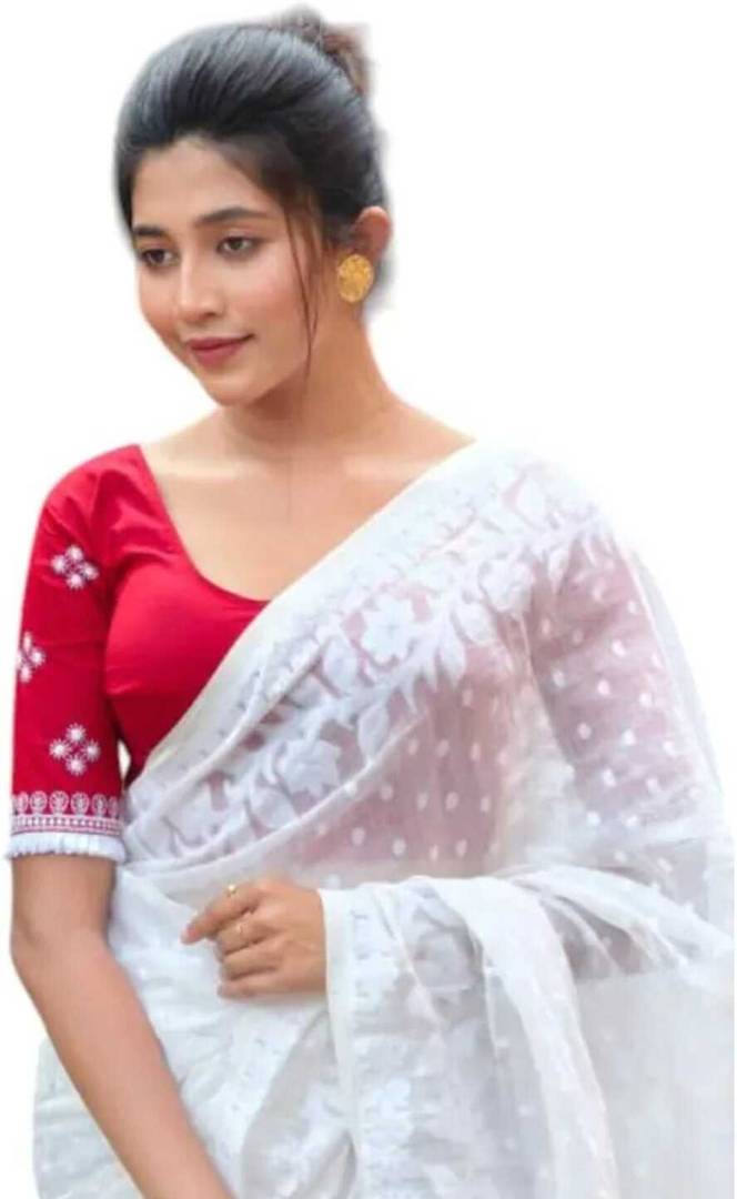 The saree appears to be made of a soft cotton or cotton-silk blend, which drapes beautifully and offers comfort — ideal for festive occasions, traditional events, or elegant day wear.