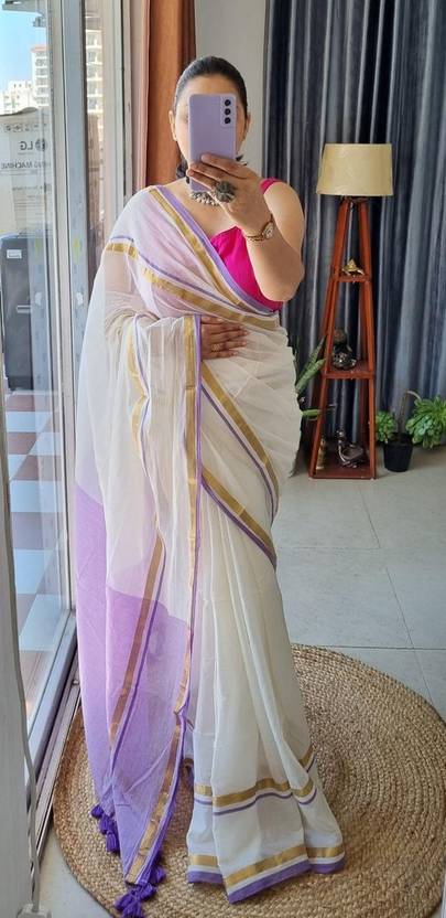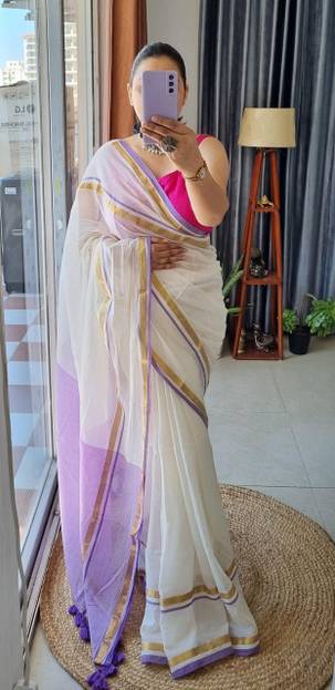 The saree appears to be made of a soft cotton or cotton-silk blend, which drapes beautifully and offers comfort — ideal for festive occasions, traditional events, or elegant day wear.