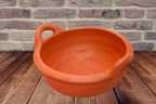 How to use your earthenware: Use earthen cookware only for cooking where the temperature rise takes place gradually. Sudden rise or fall of the temperature make lead to its cracking. Never add broth or cold water into an earthen pot that is already heated. If you are using the dishwasher for washing the unglazed, earthenware do not put in other cookware with it. The rubbing may cause scratches on the earthenware. Do not use scratchy powdered cleaner for cleaning your earthenware. Use only a mild soap. To removed food items stuck to your unglazed earthenware, simply soak it in water without detergent. The detergent might be absorbed by the earthenware and prove poisonous while being used the next time. *****As it was a handmade product size and colour may slightly vary.*****