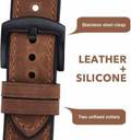 Lakshta Leather Strap for Smart watch 20mm Dark Brown ( Dark Brown Leather and Silicon Strap ) Smart Watch Strap (Brown)
