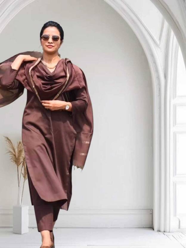 A salwar kurta dupatta is a traditional three-piece Indian outfit. It consists of a kurta (a long, loose-fitting tunic), salwar (loose trousers that narrow at the ankles), and a dupatta (a scarf or shawl). The dupatta is often draped over the shoulders or head, adding to the outfit's elegance and modesty. The style and design of each piece can vary greatly, making it a versatile and popular choice for various occasions.