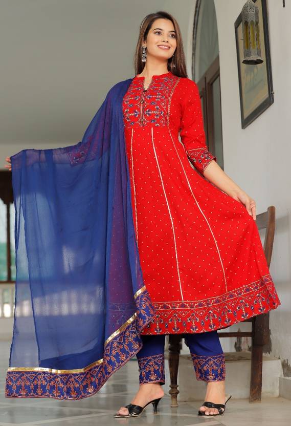 Women Cotton Rayon Kurta Pant Dupatta Set