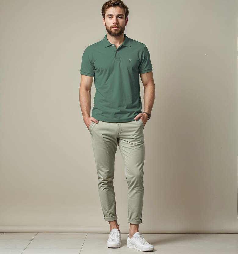 LAMADE Solid Men Mandarin Collar Green T-Shirt