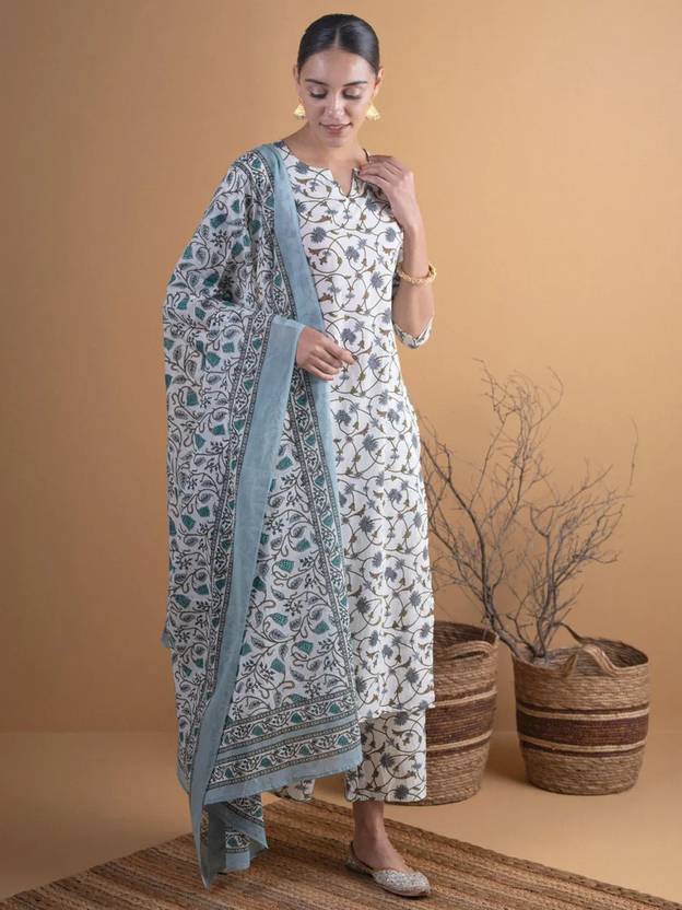 Lamba Creations Floral Print Kurta, Palazzo & Dupatta Set