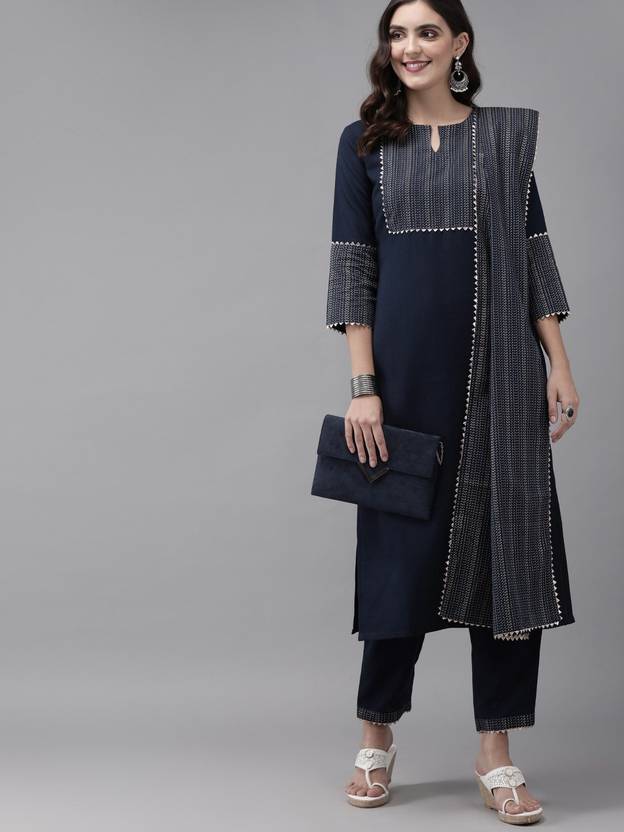 Owing to its attractive design, the Lamba Creations Women's Kurta, Pyjamas, and Dupatta Set effortlessly combines sophistication and style. Moreover, this set offers elegant elements such as a keyhole neck, three-quarter sleeves, and a simple yet beautiful print on the neckline and arms with a taping border. This intricate detailing adds a touch of uniqueness to this ensemble, making it a standout choice for special occasions and festive events. And, courtesy of its solid pattern, this set showcases a timeless and versatile appeal. Moreover, the solid-coloured fabric serves as a blank canvas for you to showcase your personal style by accessorising with different pieces. Additionally, the simplicity of the solid design ensures that this set remains a fashion staple, transcending trends and ensuring a sophisticated and polished appearance year after year.