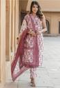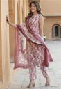 Stylish V-Neck Printed Kurta and Trousers with dupatta Ethnic Set. Floral printed Straight shape Regular style V-neck, sleeveless no sleeves Na pockets thread work detail Calf length length with straight hem, Trousers design: Printed Trousers Elasticated waistband Slip-on closure Dupatta Printed dupatta