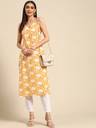 Lamba Creations Women Printed Straight Kurta (Yellow)