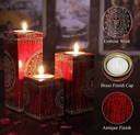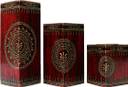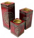 LAMCY PLAZA Handmade Wooden Tealight Candle Holder/Rustic Home Décor/Table Top Candle Holder Wooden Tealight Holder (Red, Pack of 3)