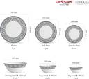 6N Full Plate (275 mm), 6N Quarter Plate (200 mm), 6N Veg Bowl (180 ml) , 6N Soup Bowl (340 ml), 1N Platter (310 mm), and 2N Serving Bowl (1450 ml)
