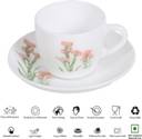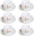 LAOPALA Pack of 12 Opalware Pink Florest 150 ml Cup Saucer Set (White, Cup and Saucer Set)
