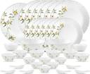 LAOPALA Pack of 35 Opalware Green 35 Pcs Dinner Set (White, Microwave Safe)