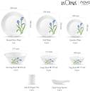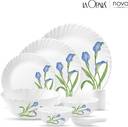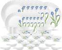 LAOPALA Pack of 35 Opalware Novo Collection Tender Trio Dinner Set (White, Green, Blue, Microwave Safe)