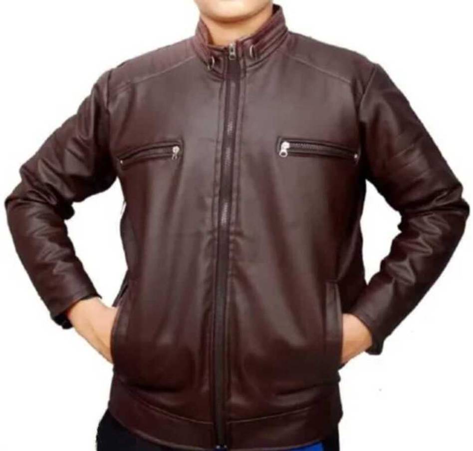 Men Solid Leather Jacket