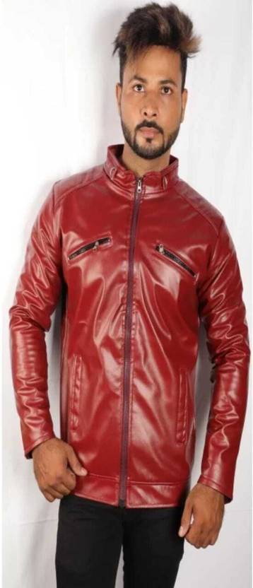 Men Solid Leather Jacket